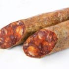 El Chorizo Ibérico Loncheado de Ibéricos Iluxtre es un embutido tradicional de sabor profundo, elaborado con carne de cerdo ibérico y adobado con especias naturales. Este chorizo se cura de manera artesanal, lo que le permite desarrollar un sabor intenso y especiado que es el reflejo de la calidad ibérica. Presentado en finas lonchas, cada bocado ofrece una textura firme y una marmoleada perfecta de grasa y carne, ideal para disfrutar en tapas, tablas de embutidos, o como acompañamiento en platos especiales. El Chorizo Ibérico Loncheado es la opción perfecta para aquellos que buscan comodidad sin perder la autenticidad de un chorizo ibérico de calidad.