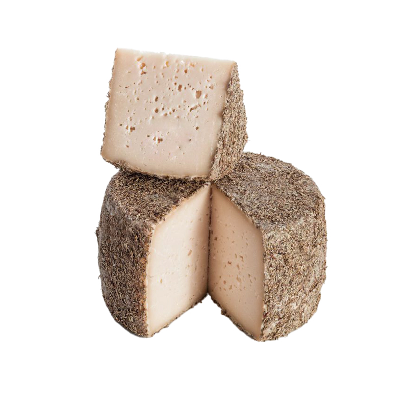Queso de oveja curado al romero de Ibéricos Iluxtre, una exquisita combinación de sabores intensos con un toque aromático de romero.